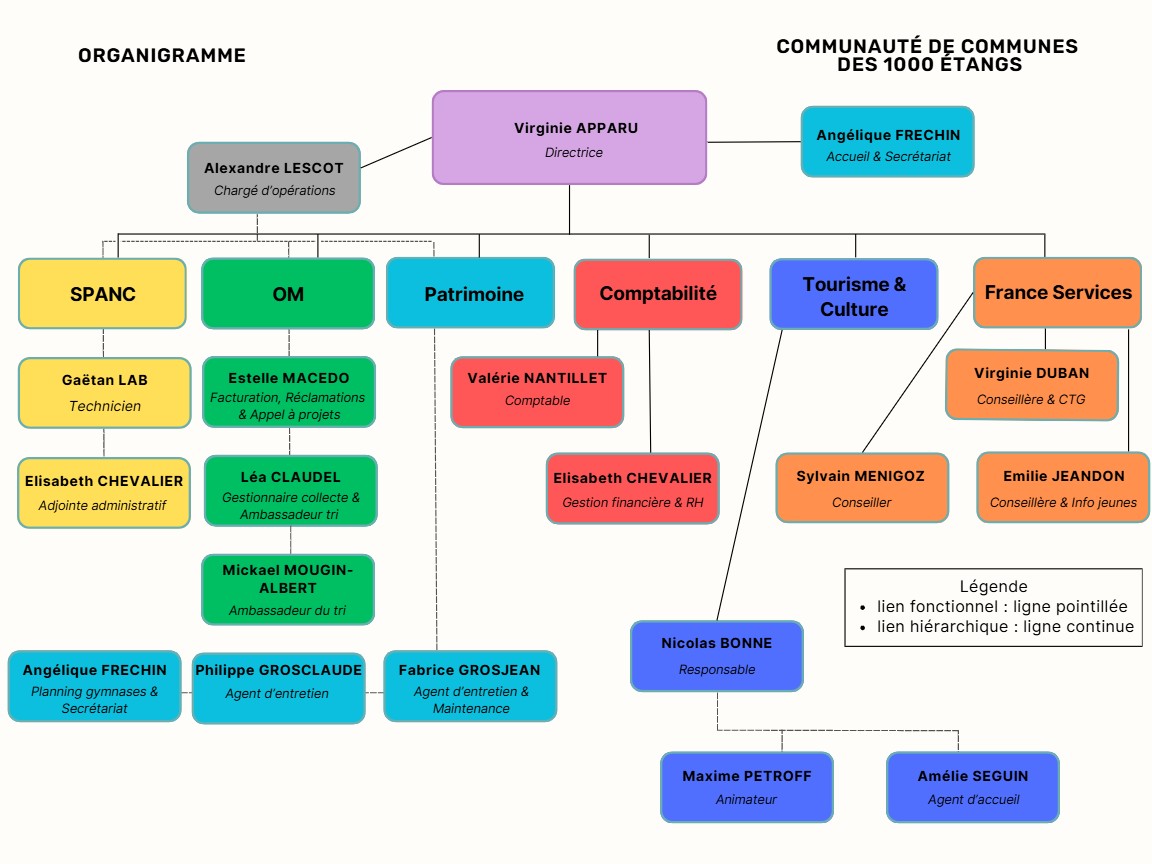 L’équipe de la Communauté de Communes des 1000 Étangs est composée de 15 personnes :